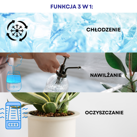 Funkcja 3 w 1: chłodzenie, nawilżanie i oczyszczanie