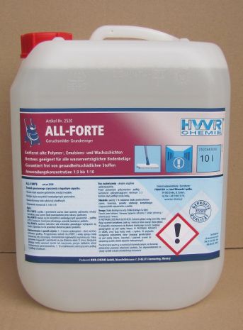 ALL-FORTE art.nr 2520,- czyści szybko i gruntownie stare warstwy polimerów, emulsji i wosków. Doskonały do wszystkich wodoodpornych powierzchni – podłóg z PCV, linoleum, tworzywa sztucznego, kamienia i drewna.