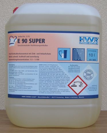 E 90 SUPER art.nr 2170,- Wysoko wydajny bezwonny odwapniacz, odwapnia szybko i skutecznie zbiorniki na ciepła wodę, bojlery, garnki do gotowania, maszyny do lodów, kawy, herbaty i zmywarki do naczyń, dysze itd.