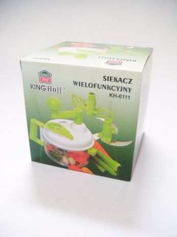 Siekacz wykonany z wysokiej jakości tworzywa sztucznego.Ostrza wykonane z wysokiej jakości stali nierdzewnej.Doskonały do przygotowania sałatek owocowych,warzywnych.Z łatwością posieka każdy produkt.Zestaw zawiera : 1 ostrze do siekania,1 ubijak do jaj,plastikowy pojemnik,oddzielacz białka jajecznego,pokrywa z korbą ramienną i uchwytem.Łatwy w obsłudze oraz w zachowaniu czystości.
