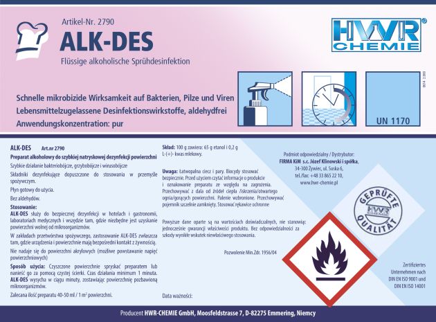 ALK-DES Środek alkoholowy do szybkiej natryskowej dezynfekcji powierzchni