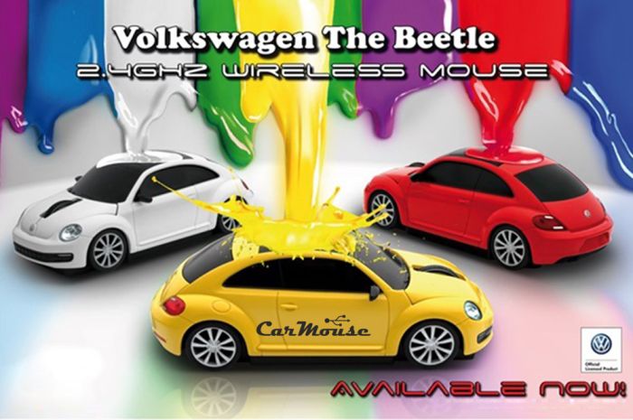 Wysokiej jakości, bezprzewodowa mysz komputerowa USB na licencji koncernu Volkswagen. Model VW Beetle.