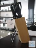 ZESTAW ZAWIERA: - nóż do skrobania - nóż do warzyw - nóż kuchenny - nóż do wędlin - nóż do chleba - nożyce - drewniany blok Noże wykonane z utwardzonej stali szlachetnej. Ergonomicznie ukształtowane rękojeści umożliwiające bezpieczne użytkowanie. Ostrza naostrzone ręcznie i sprawdzone pod względem jakości. Blok drewniany.