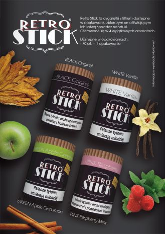 Cygaretki RETRO Stick to cygaretki z filtrem dostępne w opakowaniu umożliwiającym ich łatwą sprzedaż na sztuki.