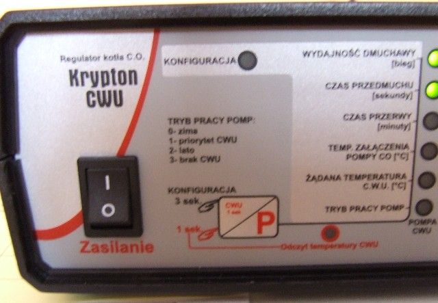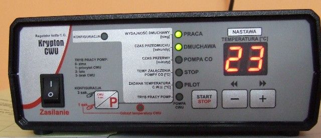 Model KRYPTON z obsługą Ciepłej Wody Użytkowej posiada dodatkowe gniazdo do podłączenia drugiej pompy c.o. dla obsługi bojlera oraz dodatkowy czujnik temperatury montowany na bojlerze o długości 3metrów.