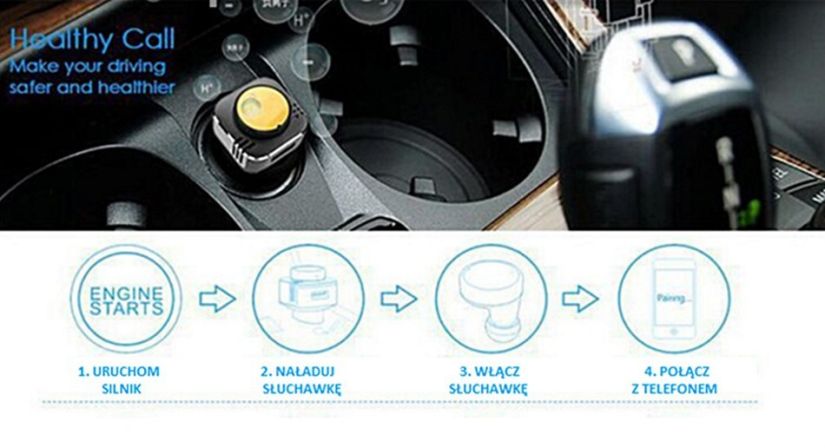 Uruchomienie silnika automatyczne włączenie ładowarki z jonizatorem, po kilku sekundach słuchawka uruchomi się automatycznie i połączy z telefonem.