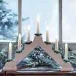 Świecznik adwentowy to piękna dekoracja i oświetlenie domu w okresie Świąt Bożego Narodzenia. Siedem ramion świecznika z ciepłym białym światłem diodowym, dającym przyjemny blask sprzyja nastrojowej atmosferze w okresie Adwentu i Bożego Narodzenia. Światło siedmioramiennego świecznika nadaje domowi wyjątkowy klimat. Świecznik to przepiękna dekoracja na zimowy i świąteczny czas, która nada Twojemu domowi niepowtarzalny charakter. Postaw go na parapecie lub na stoliku przy oknie. Jest zasilany prądem, a więc bezpieczniejszy niż tradycyjne świeczki. Każda świeczka posiada świą stroikiem. Świecznik przeznaczony do użytku w pomieszczeniach. Posiada włącznik/wyłącznik. Świecznik idealnie sprawdzi się jako dekoracja stołów, parapetów, kominka lub innych elementów świątecznego wystroju domu.