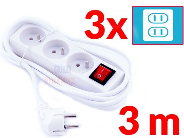 PRZEDŁUŻACZ 3M 3 x GNIAZDO BIAŁY