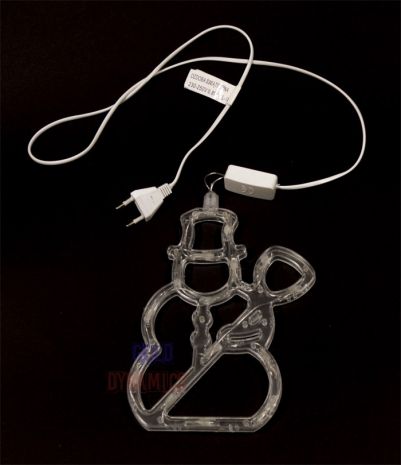 Ozdoba świetlna 15 LED w kształcie bałwanka, która zapewnia szereg efektów świetlnych w postaci wielokolorowego migotania.