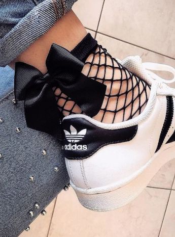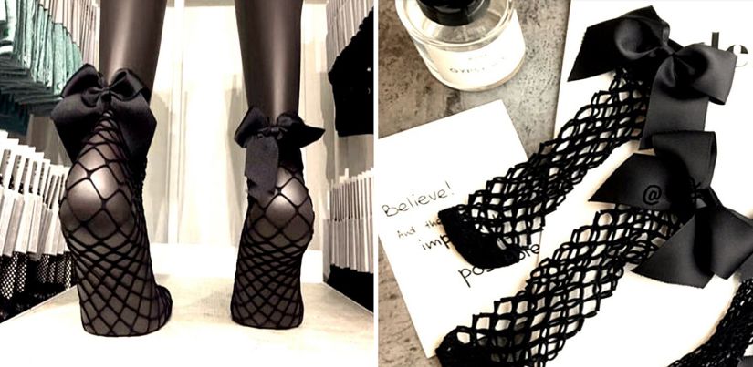 Skarpetki kabaretki z dużymi oczkami i uroczą kokardką z tyłu.