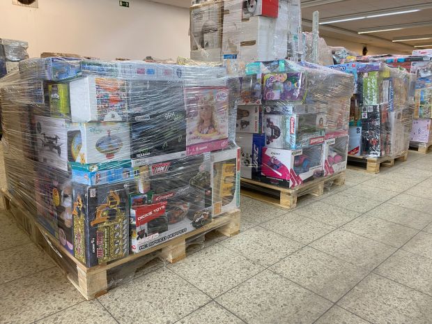 Minimalny zakup to 1 paleta - wysokosc ok. 1,5 m. Znajduje się na niej różnorodne zabawki czołowych producentów.