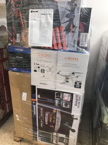 Minimalny zakup to 1 paleta - wysokosc ok. 2 m. Znajdują się na niej różnorodne produkty multimedialne czołowych producentów. Można znaleźć tam laptopy, sprzet komputerowy, telefony, faksy, drukarki, wieże, kina domowe, telewizory, wyposazenie biurowe, car audio, czujniki, kable, ładowarki, akumulatory, modelarskie, sprzet dj-ski, oświetlenie, narzedzia ogrodowe, systemy alarmowe, kamery, sprzet foto, video, tv.