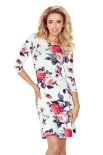 88-16 Sukienka z rękawkiem 3/4 - KWIATY CZERWONE NA BIAŁYM TLE