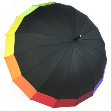 Automatyczna parasolka otwierana przyciskiem. Bardzo skuteczna w chronieniu przed deszczem i wiatrem. Wzmocniona włóknem szklanym metalowa 16-brytowa konstrukcja. Parasol w momencie mocniejszego wiatru może wygiąć się do góry - wystarczy wtedy złożyć go ręcznie, aby powrócił do poprzedniej postaci. Czasza wykonana została z poliestru w kolorze czarnym z dodatkową lamówką w 16 kolorach. Parasol wyposażony został w wygodną, plastikową, gumowaną rączkę. Dzięki swojemu wyjątkowemu designowi stanowić może świetny pomysł na prezent dla każdego.