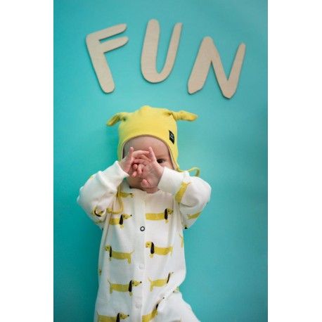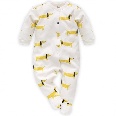 Ubranko ozdobione bezpiecznym dla dziecka nadrukiem wesołych piesków.