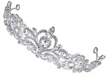 Ozdobna tiara dzięki której poczujesz się jak księżniczka. Wykonana z metalu jubilerskiego efektowna korona ślubna to doskonały dodatek do każdej fryzury.
