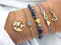 NOWOŚĆ Komplet zestaw 5 bransoletek złotych perły serce love