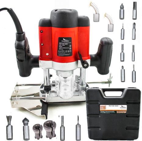 Frezarka górnowrzecionowa Powermat PM-FGW-2000 znajdzie zastosowanie w każdym warsztacie. Idealne urządzenie do obróbki drewna, aluminium i plastiku. Narzędzie jest bardzo ergonomiczne, mocne i precyzyjne. Szybki sposób mocowania frezów za pomocą uchwytu SDS. Zewnętrzne gniazda na szczotki umożliwiają ich wymianę bez rozbierania obudowy silnika. Wymienne uchwyty frezów (w zestawie 2 sztuki). Płynna regulacja obrotów do płynnej i precyzyjnej pracy. Blokada włącznika w celu ochronny przed niewłaściwym użyciem.