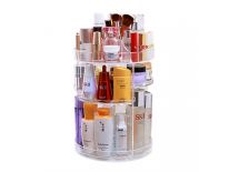 Na górze organizera znajduje się duża półka z 4 przegródkami.W przegródkach umieszczone są dodatkowo 2 zdejmowalne elementy.Dzięki pionowej budowie i obrotowej podstawie bardzo łatwo można odnaleźć kosmetyki i zaoszczędzić miejsca.