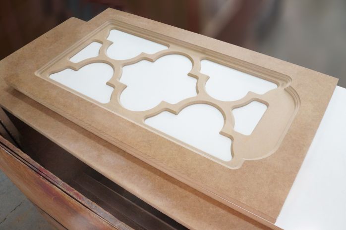 Przedstawiamy fronty wykonane z MDF, każdy element jest frezowany z jednego kawałka płyty. Dzięki temu fronty są bardzo trwałe oraz nie mają żadnych łączeń.