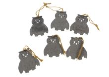 Zawieszka dekoracyjna SOWY 7 cm KPL 6 szt - SZARE