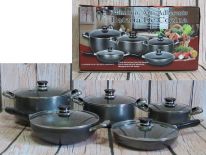 patelnia 25 cm, wok 28 cm, garnki: 2,5L; 5,7L; 8,9L