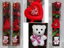 Upominek WALENTYNKOWY róża z sercem i misiem w pudełku 33x6 cm