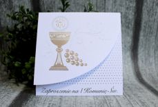 Zaproszenie kwadratowe z kopertą 12x12 cm na KOMUNIĘ ŚWIĘTĄ No.39978 SREBRO