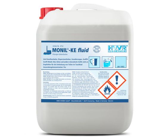 Następnie zeskrobać farbę szpachelką lub usunąć urządzeniem wysokociśnieniowym. a potem dobrze spłukać wyczyszczony przedmiot. Kąpiel zanurzeniowa nie powinna być podgrzewana i przeprowadzona pod szczelnym zamknięciem. Nie używać na tworzywach sztucznych lub plastikowych częściach! Znaki drogowe i odblaskowe znaki drogowe w celu usunięcia graffiti czyścić szmatką zwilżoną MONIL®-KE fluid i natychmiast spłukać wodą.