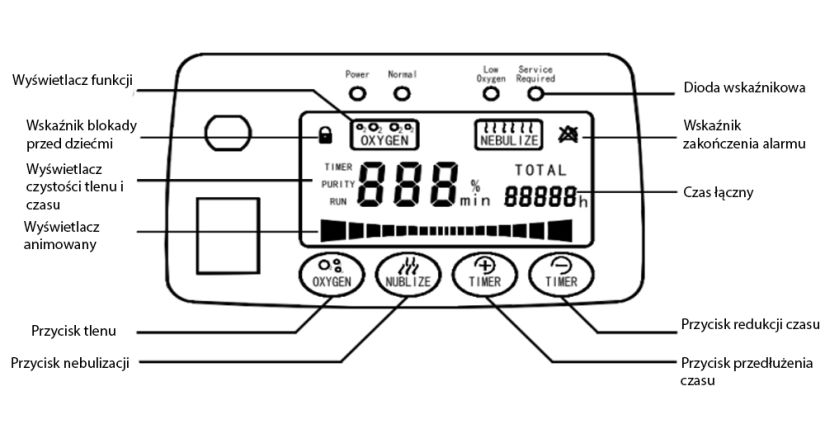 - Wysokie stężenie tlenu do 90%;