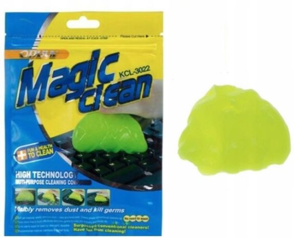 Sprzątanie trudno dostępnych zakamarków nie należy do najłatwiejszych i może przyprawić o zawrót głowy. Szczególnie problematyczne są urządzenia elektroniczne których nie możemy wyczyścić zwyczajnie wodą. Miotełka czy szczoteczka często tylko powodują rozmazanie brudu oraz kurzu zamiast ich usunięcia. Wtedy z pomocą przychodzi magiczny czyścik/żel który bez trudu pomoże pozbyć nam się okruchów i kurzu spomiędzy np. klawiszy komputera czy kratki wentylacyjnej w samochodzie. Czyścik wykonany jest z nietoksycznego kleju!