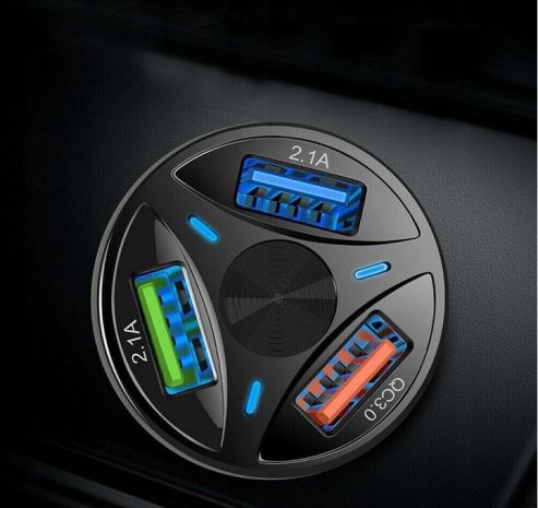 Praktyczna ładowarka samochodowa posiada trzy wejścia USB i współpracuje ze wszystkimi kablami.