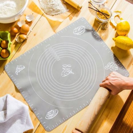 Duża, silikonowa mata o wymiarach 40cmx50cm jest doskonała alternatywą dla ciężkiej, drewnianej stolnicy.