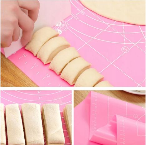 Dodatkowym atutem maty są naniesione miarki w centymetrach, calach oraz średnice koła, przydatne podczas przygotowywania np. ciasta pod odpowiednie wymiary.
