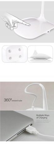 Lampa biurkowa posiada dotykowy włącznik, dzięki któremu można regulować natężenie światła na 3 poziomach.