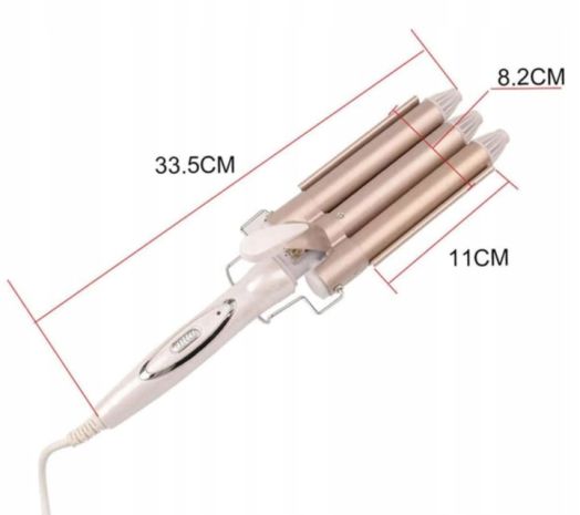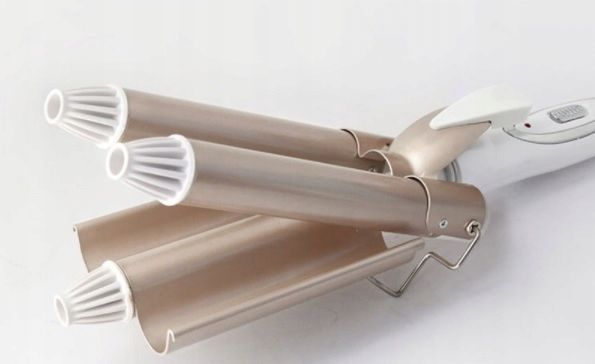 Narzędzie do pielęgnacji włosów z wygodnym uchwytem i 3 rolkami lokówki sprawi, że włosy będą się pięknie układać w fale.