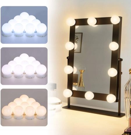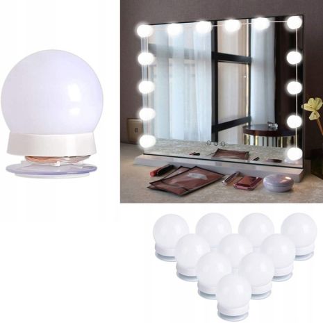 Nowość na rynku. Komplet oświetlenia LED 10 sztuk. Doskonale nadaje się do oświetlenia lustra toaletki lub miejsca nad łóżkiem. Lampki dają przyjemne światło. Zestaw posiada regulację natężenia świecenia. Nadaje się również do pokoju jako dekoracja. Możesz go użyć również w profesjonalnym salonie kosmetycznym