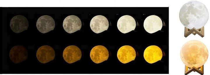Moon light posiada dotykową regulację natężenia światła, możesz dopasować intensywność świecenia do swoich potrzeb. Dodatkowa posiada dwie barwy świecenia - ciepłą białą oraz zimną białą. Obie barwy wyglądają doskonale w powłoce księżyca.