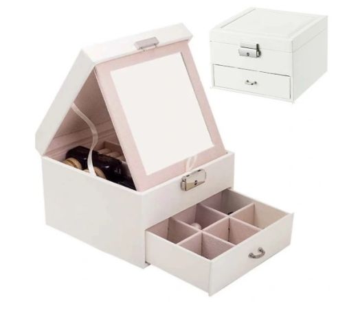 Szkatułka jest doskonałym rozwiązaniem na uporządkowanie swojej biżuterii. Sprawdzi się jako domowy organizer, a także jako ekspozytor na biżuterię.
