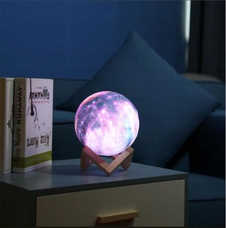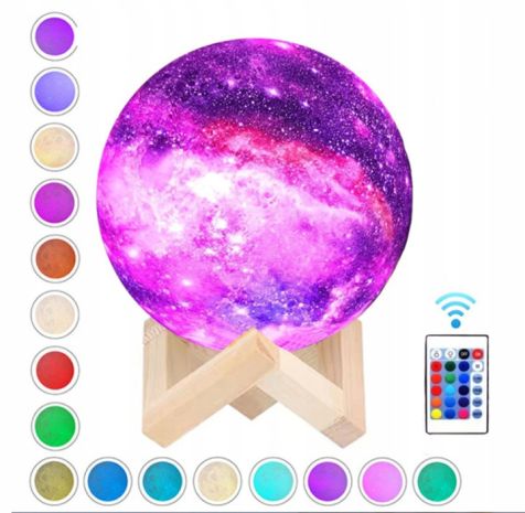 Lampka znajdzie zastosowanie w każdym pomieszczeniu. W zestawie znajduje się drewniana podstawka, która idealnie współgra z kosmicznymi kolorami.