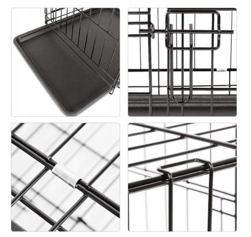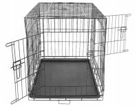 Duża, metalowa klatka dla zwierząt posiada dwa wejścia oraz wysuwaną płytę podłogową.