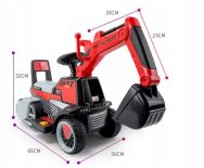 Pojazd posiada bezpieczną i stabilną konstrukcję, a z koparki może już korzystać dwuletnie dziecko. Produkt został wykonany z wysokiej jakości materiałów odpornych na warunki atmosferyczne. Jednak nie należy używać zabawki podczas deszczu lub śniegu.