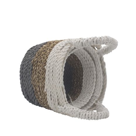 Zestaw koszy z trawy morskiej jest idealny do eksponowania lub przechowywania produktów. Produkty są ręcznie tkane w Indonezji. Sprzedawane w zestawach po 3 sztuki. Największy z nich posiada górny uchwyt. Modne naturalne materiały oraz kilka wersji kolorstycznych do wyboru.