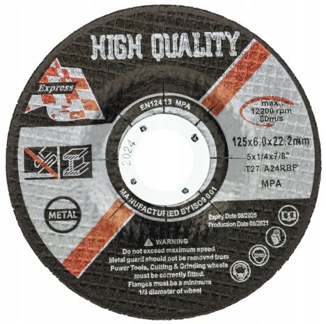 TARCZA DO SZLIFOWANIA METALU STALI 125x6 mm P24 TARCZE ŚCIERNA ŚCIERNICA
