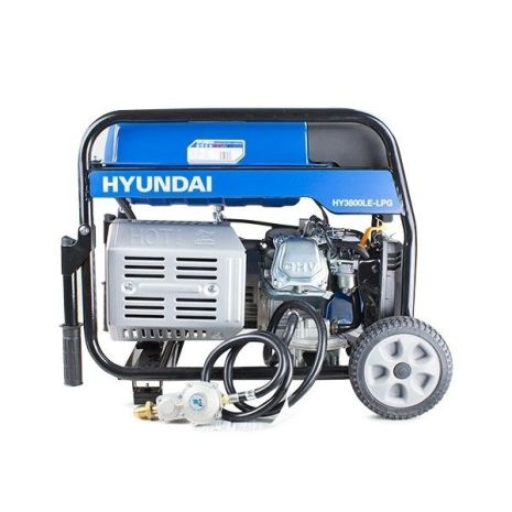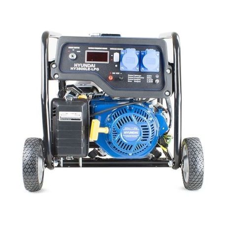 HY3800LE-LPG to potężny, a jednocześnie łatwo przenośny generator dwupaliwowy o mocy 3,8 kW od Hyundai. Zaprojektowany zarówno do użytku domowego, jak i komercyjnego, HY3800LE-LPG jest napędzany przez ekonomiczny jednocylindrowy silnik Hyundai 4-suwowy o pojemności 223 cm³ / 7,5 KM. Zintegrowany zestaw kółek sprawia, że przenoszenie tej maszyny jest bardzo łatwe. HY3800LE-LPG może być zasilany benzyną bezołowiową i gazem LPG.