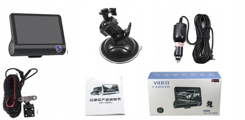 Rejestrator jazdy z kamerą wewnętrzną, cofania oraz przednią Full HD