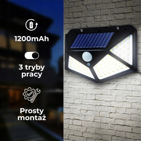 Oświetl swoją przestrzeń zewnętrzną w nowoczesny i energooszczędny sposób dzięki lampie solarnej LED z czujnikiem ruchu. 100 ultra-jasnych diod, szeroki kąt świecenia 270° i inteligentny czujnik ruchu zapewniają bezpieczeństwo i komfort – bez konieczności podłączania do prądu.