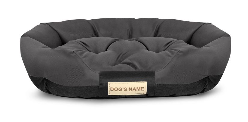 Wytrzymałe OWALNE wodoodporne legowisko dla psa w kolorze czarnym, PERSONALIZOWANE imieniem pupila!