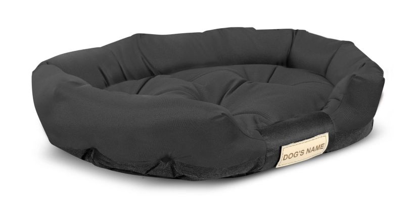 Wytrzymałe OWALNE wodoodporne legowisko dla psa w kolorze czarnym, PERSONALIZOWANE imieniem pupila!