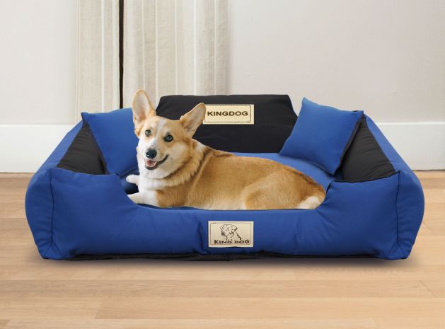 ROZBIERALNE z zamkiem, antypoślizgowe legowisko dla psa KINGDOG w kolorze niebieskim, PERSONALIZOWANE imieniem pupila!